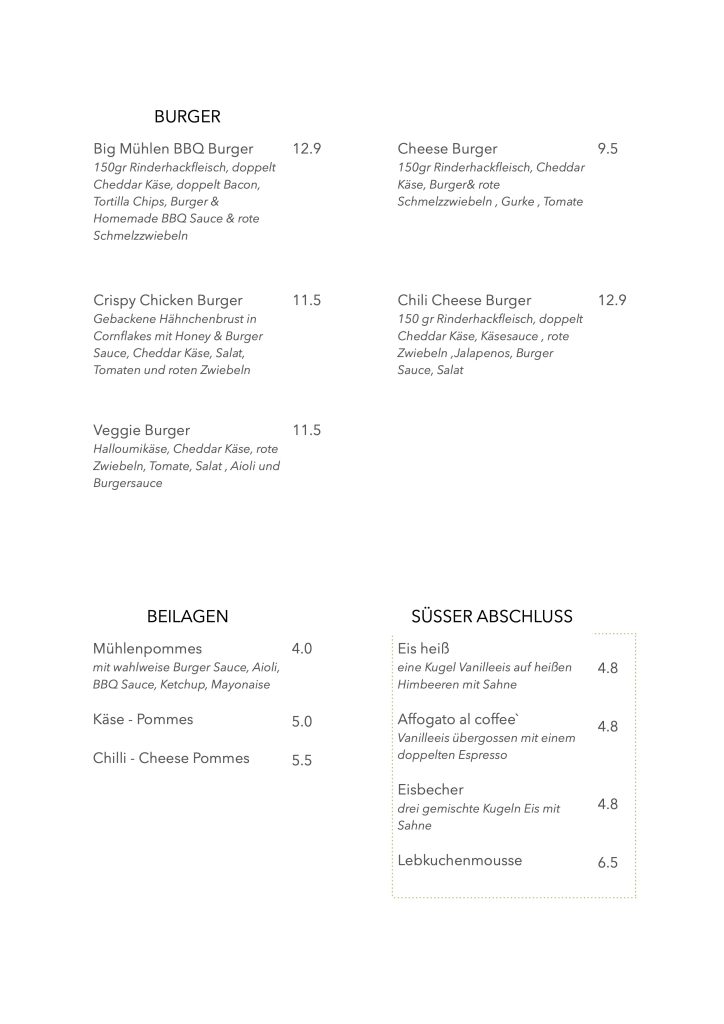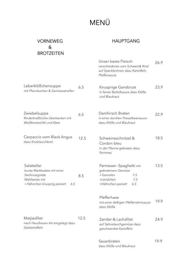 Änderungen der Speisekarte sind kurzfristig möglich.